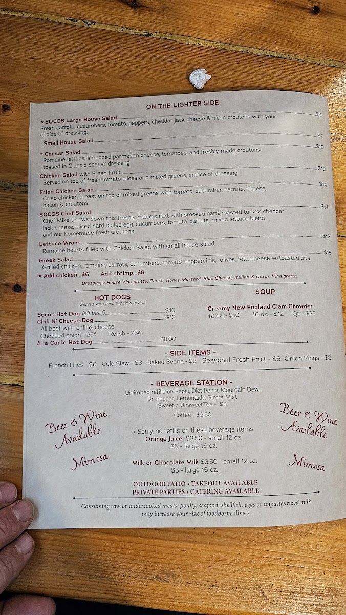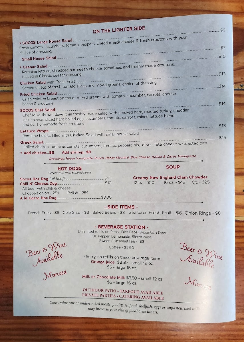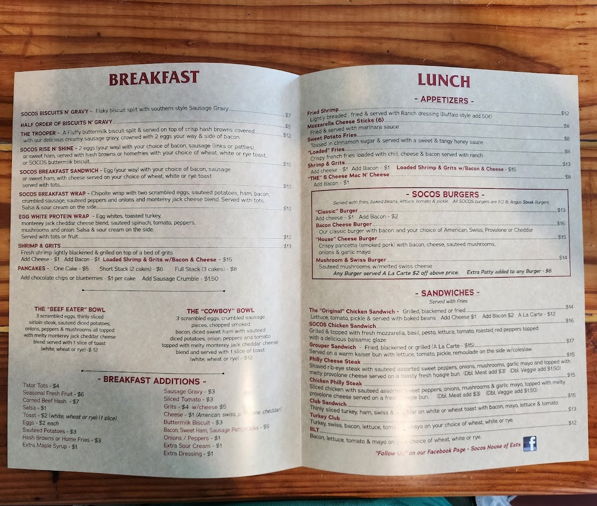 At Socos House Of Eats Menu, you're in for a treat with a diverse range of dishes designed to satisfy any craving. Located at 7364 W Grover Cleveland Blvd, Homosassa, FL, this spot offers something for everyone. Whether you're in the mood for hearty comfort food or something light and fresh, the menu is packed with flavor-packed options that hit the spot. From mouth-watering appetizers to savory main courses, each dish is crafted with care and packed with rich flavors. Pair your meal with one of the refreshing drinks, and you’ve got the perfect dining experience. Whether you're a regular or a first-timer, there's always something new to try at Socos House of Eats.